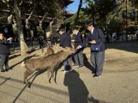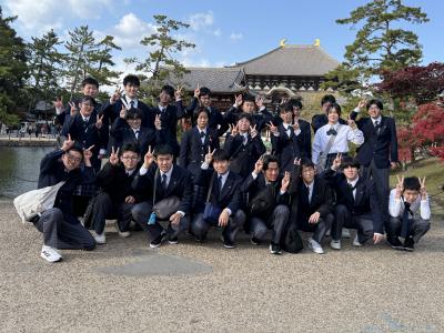 コロナ後、4年ぶりとなる関西方面への修学旅行を、11月13日から3泊4日で実施しました。雪の青森空港から40分遅れでの出発となりましたが、見学地では天気にも恵まれ、奈良、京都、大阪で予定通りの活動をすることができました。クラス毎の自主研修、総合的な探究の時間の学習「Looking For Japan」で設定した各自のテーマに沿った調べ学習など、出発前の事前学習と結びつけながら、貴重な体験をしてくることができたと感じています。