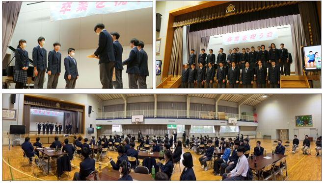 在校生は、リモートでの参加となりましたが、長い花道をつくり花吹雪と拍手で見送ったり、校内中を華やかに装飾したりして門出を祝いました。