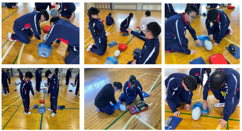 11月11日(火)に日本赤十字社青森県支部より2名の講師をお招きして、救急救命法の講習会を3学年対象に実施しました。主に心肺蘇生法やAEDの使用方法を学び、万が一に備えた知識と技能を身に付けることができました。もしもの際には「勇気」をもって行動してくれることを期待したいです。