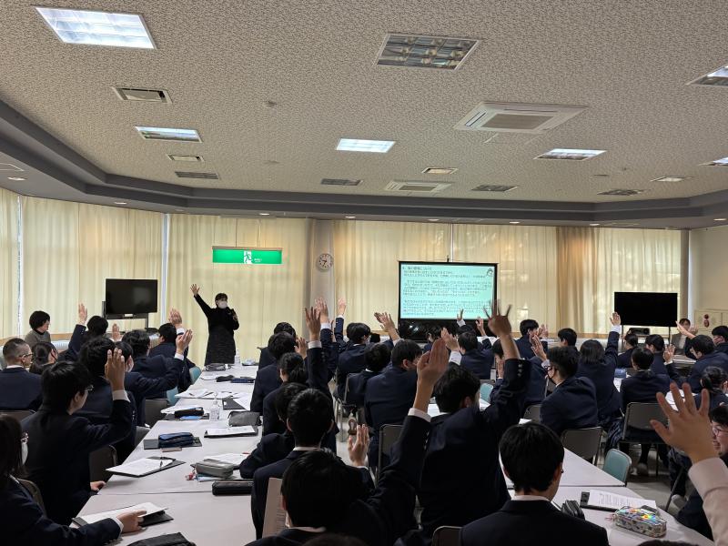 12月2日(火)全校生徒及び教職員を対象に公認心理士の方をお招きして、「SOS の出し方教室」を実施しました。演習を交えながら講義していただいたことで、和やかな雰囲気の中、生徒たちは話を聞くことができました。講義を通じて、負の感情を抑えるのではなく、まず認めて寄り添うことで、上手く感情を表出することができるようになるなど新たな気付きもたくさんあったようでした。